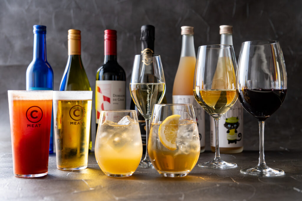 2時間の飲み放題には、乾杯にぴったりなスパークリングワインをはじめ、ビール・ハイボール・焼酎・日本酒・サワー・ソフトドリンクまで幅広くラインナップ